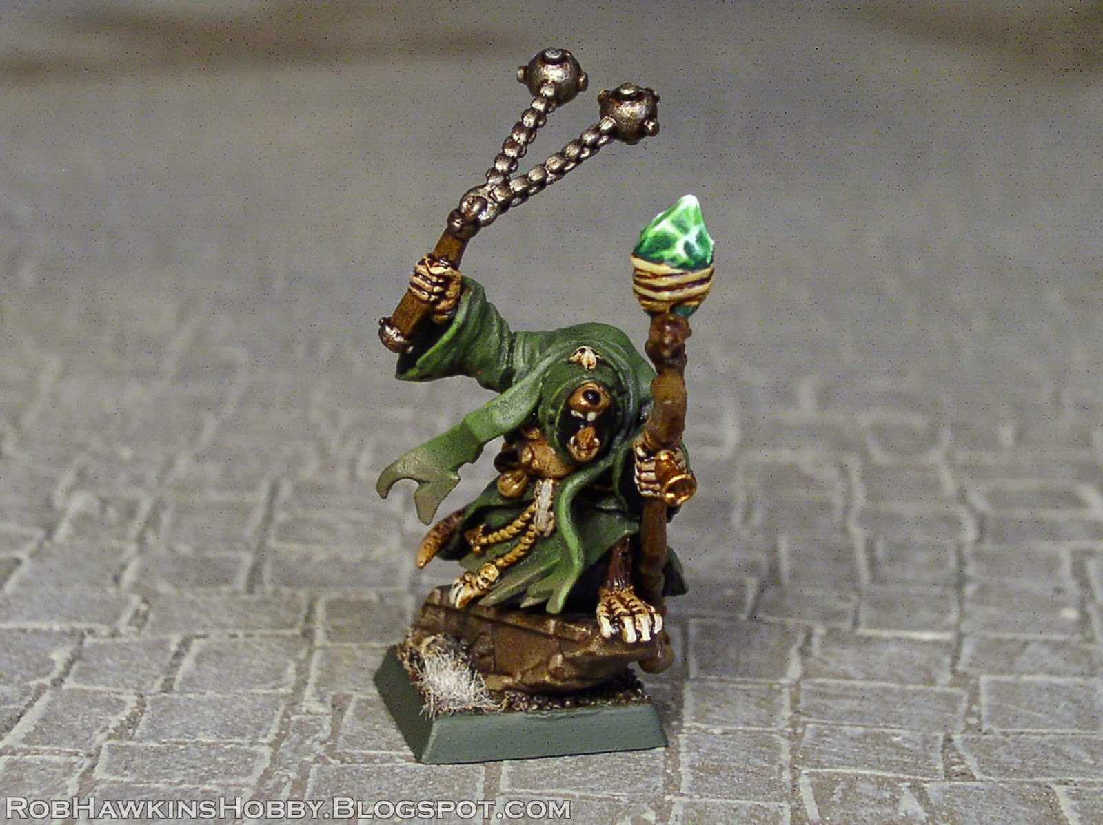 As my Skaven legion expands its Under-Empire, Clan Skryre and Clan Pestilens have joined forces. To lead the sea of plague monks that has been steadily growing around Warlord Skabsis, I've put together two plague priests: Skrolulous and Snagglecyst.