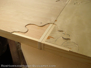 Then, I cut the swamp shapes out of the top boards and attached them to the table frames to create a 1/4-inch recessed areas.