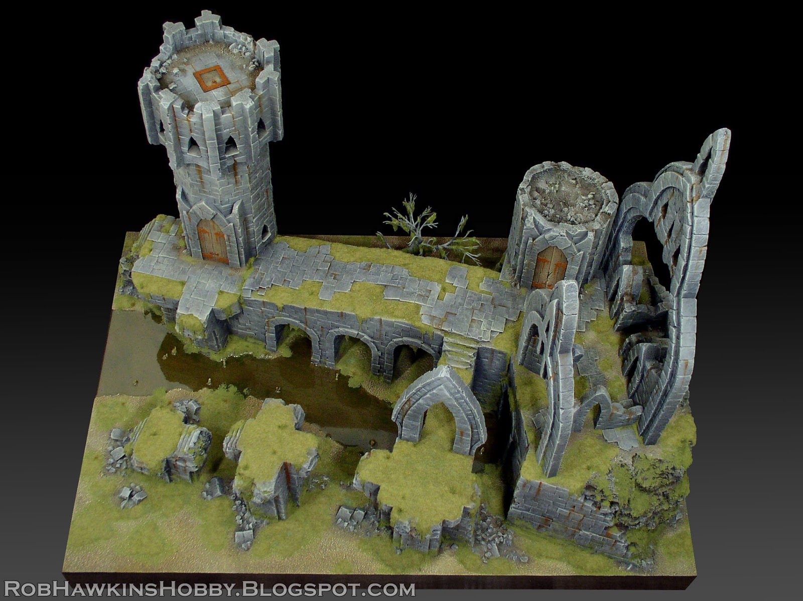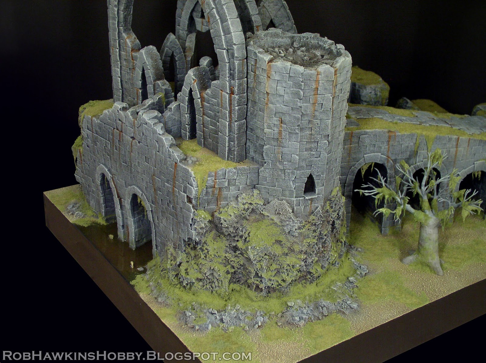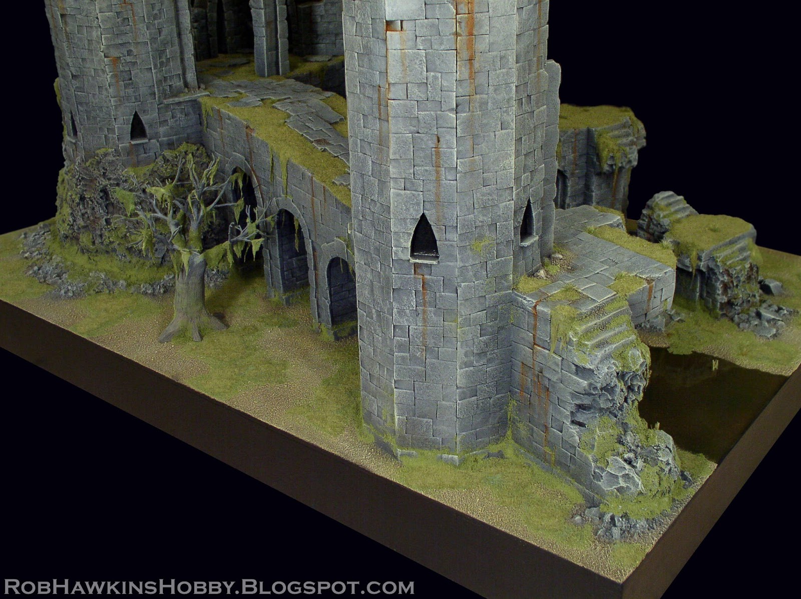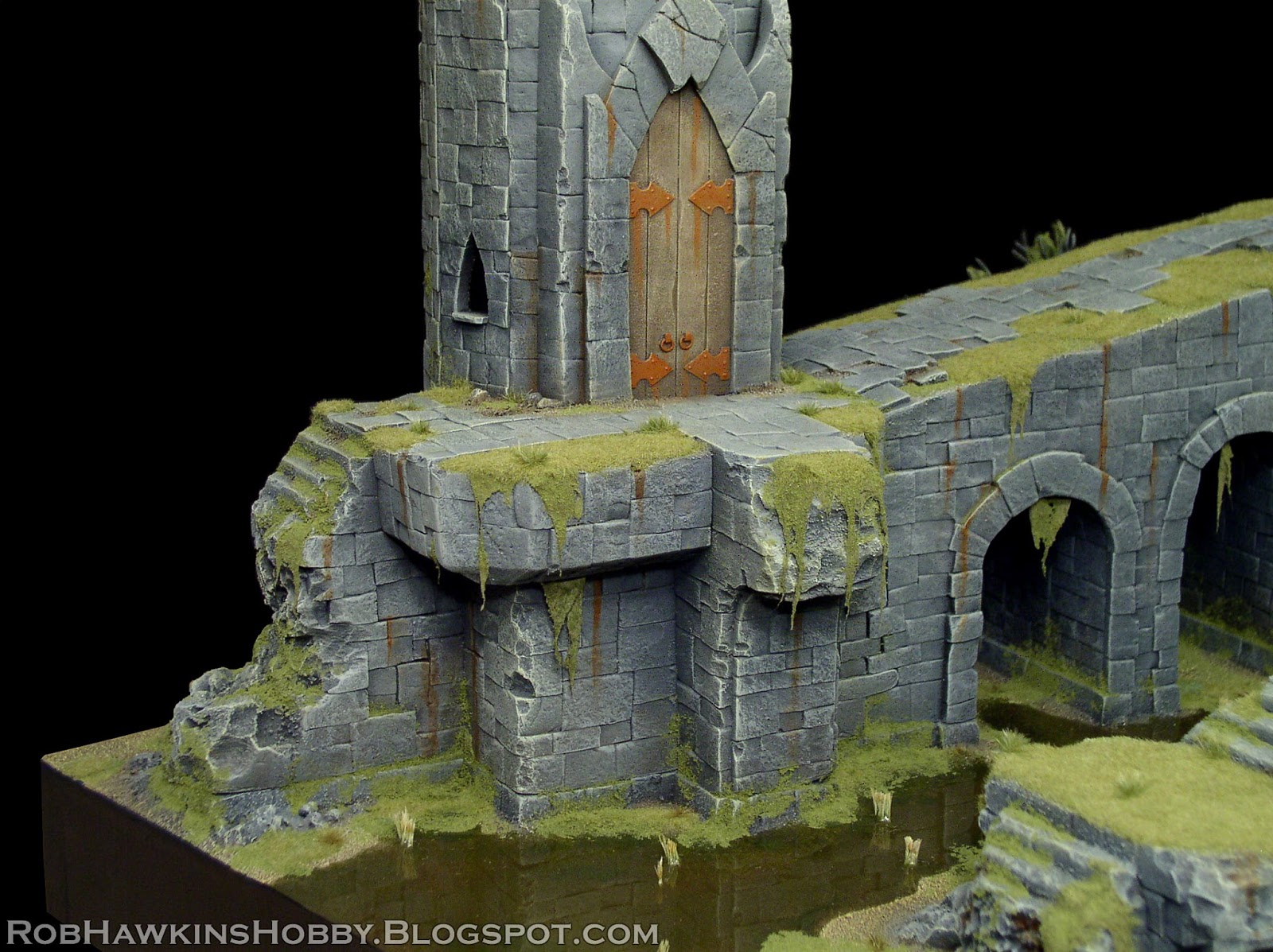 All that remained was to finish painting the large component, and then attach it and the tower to the board along with their own bits of hanging moss and static grass.