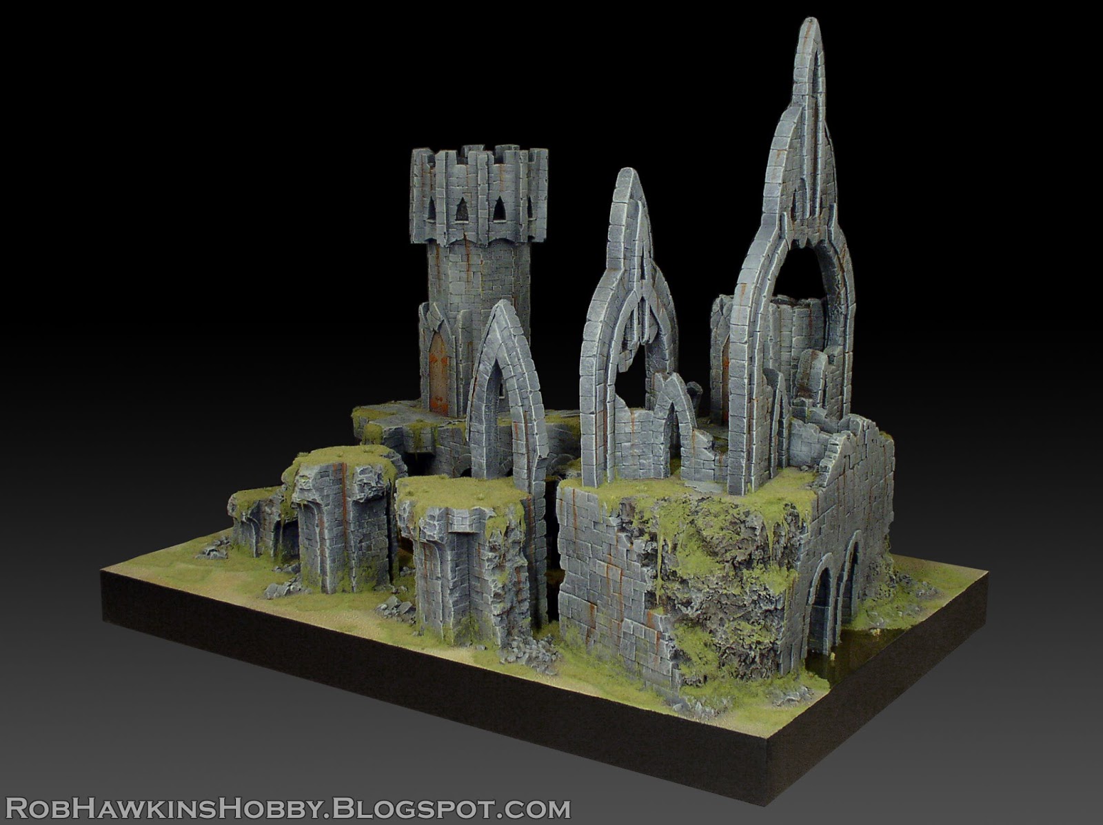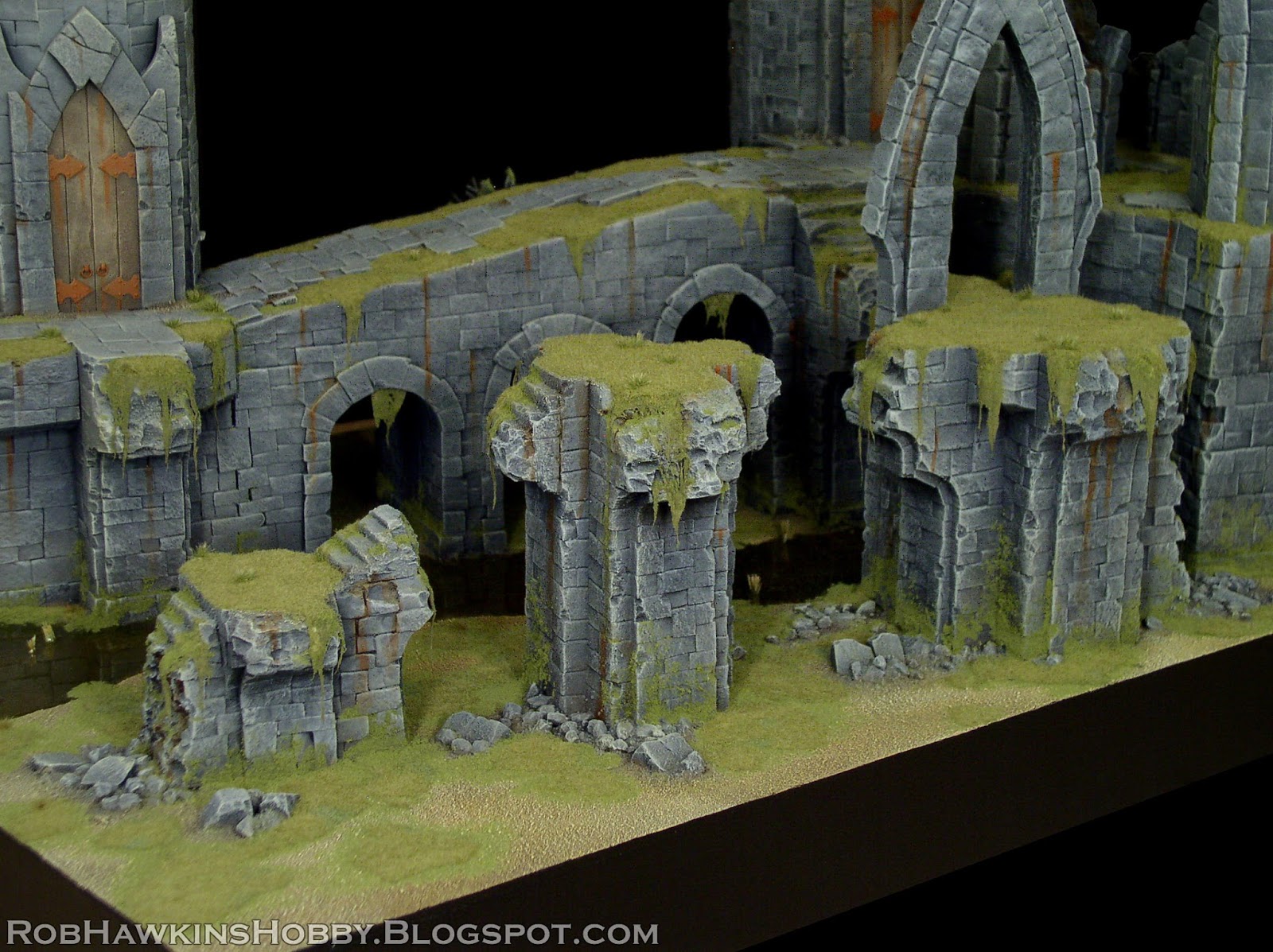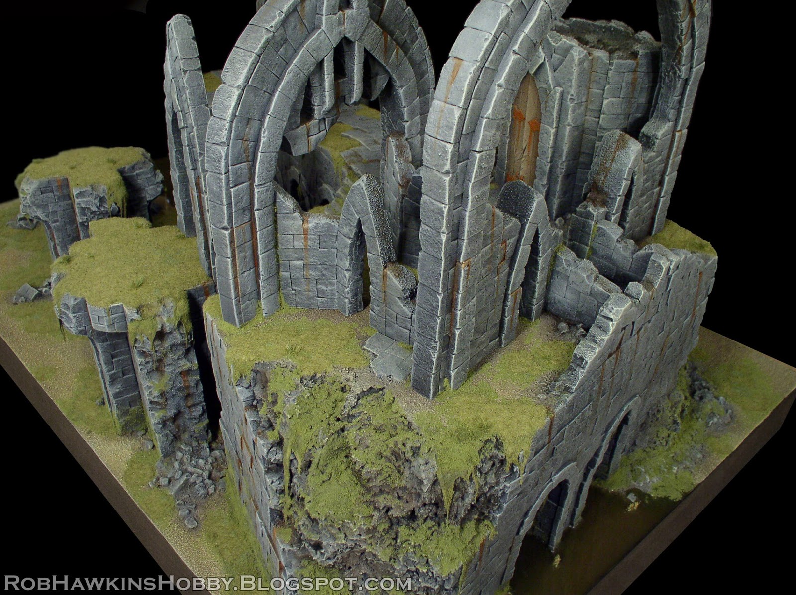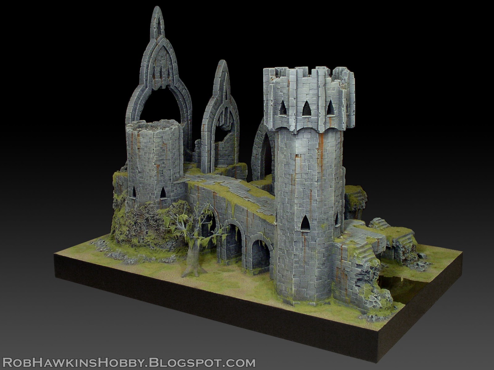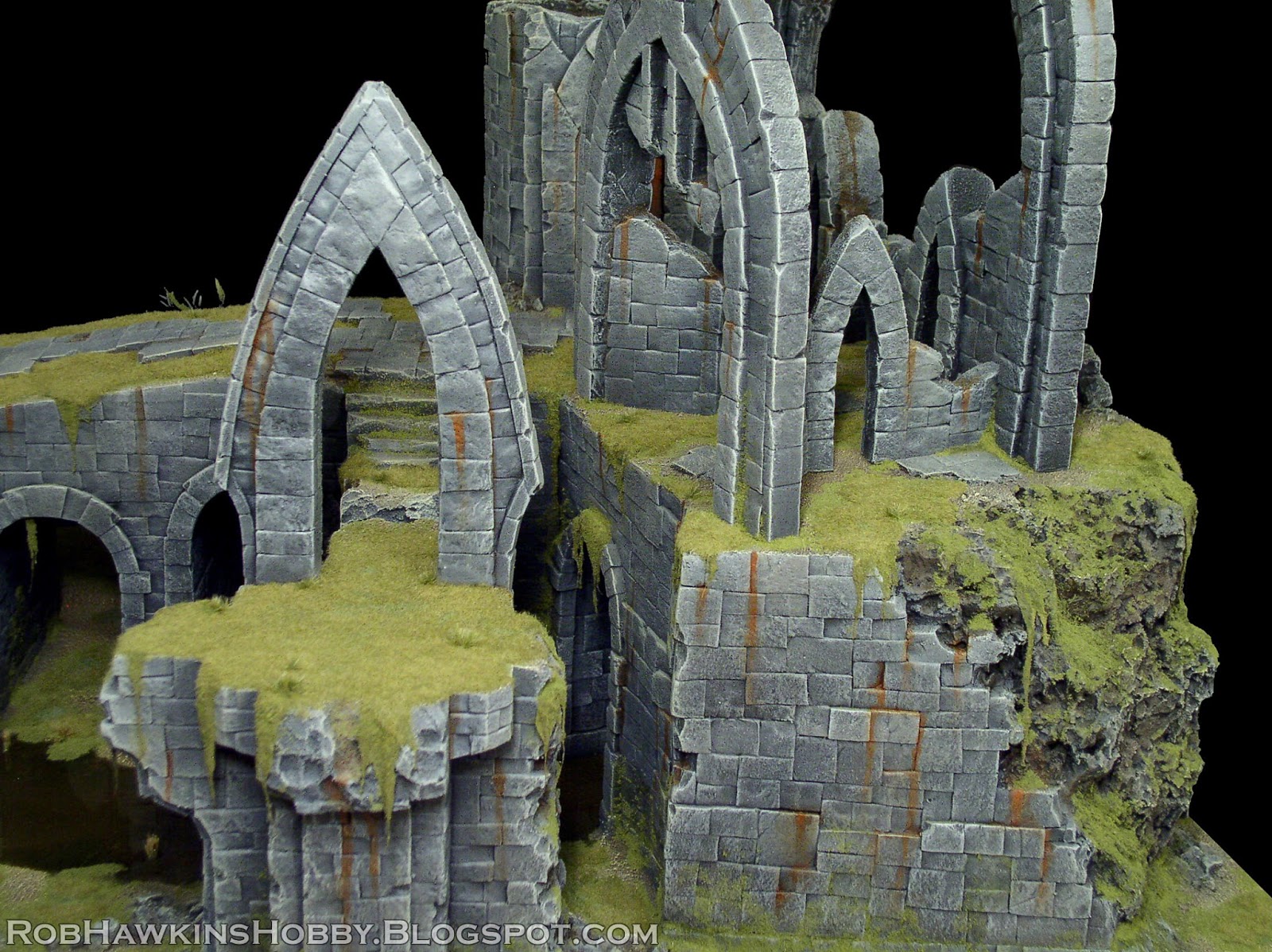 All that remained was to finish painting the large component, and then attach it and the tower to the board along with their own bits of hanging moss and static grass.
