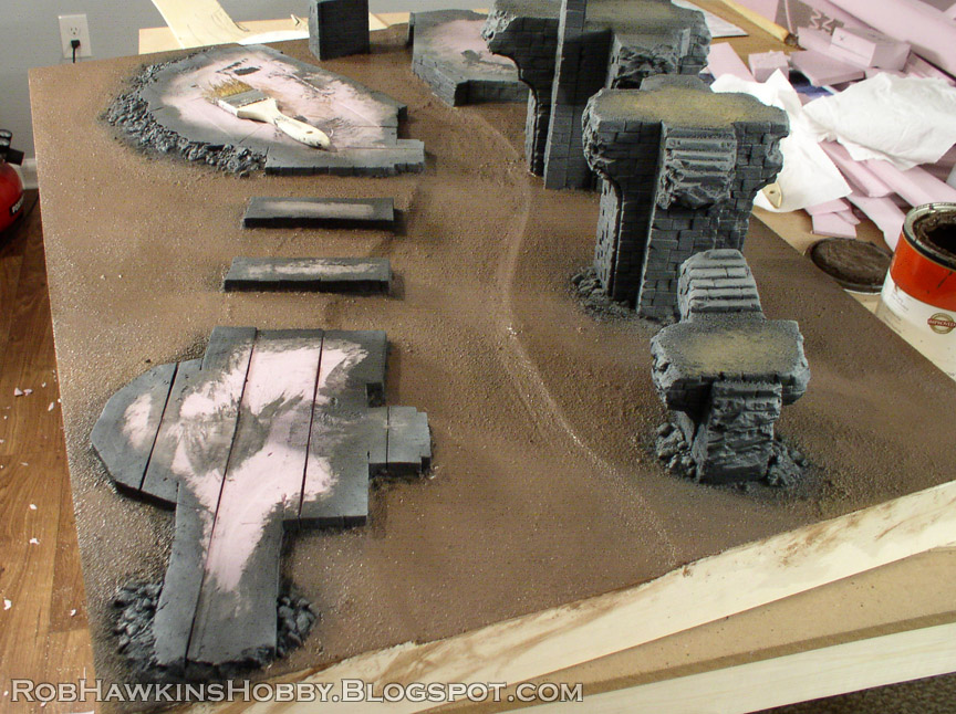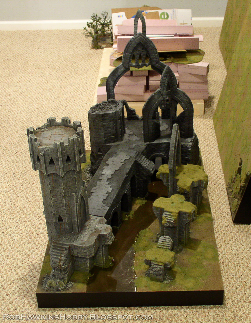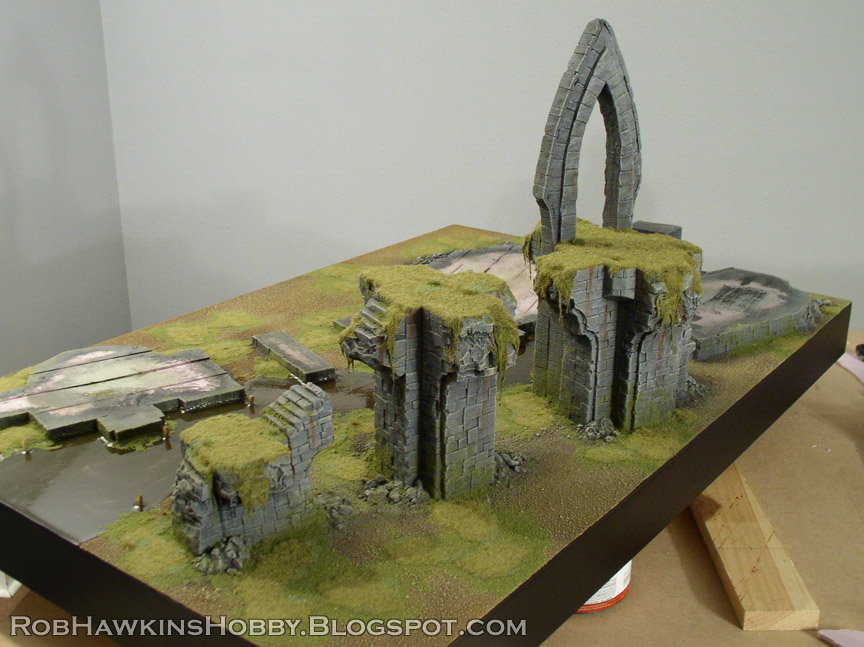 (I'm cheating the timeline a little because, as you can see, the table base was actually painted before I had even finished construction on the large ruin and arches.)