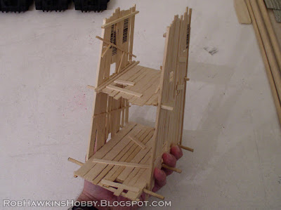 The sides and floors are constructed out of basswood strips, and the wheels are taken from the old metal doom wheel.