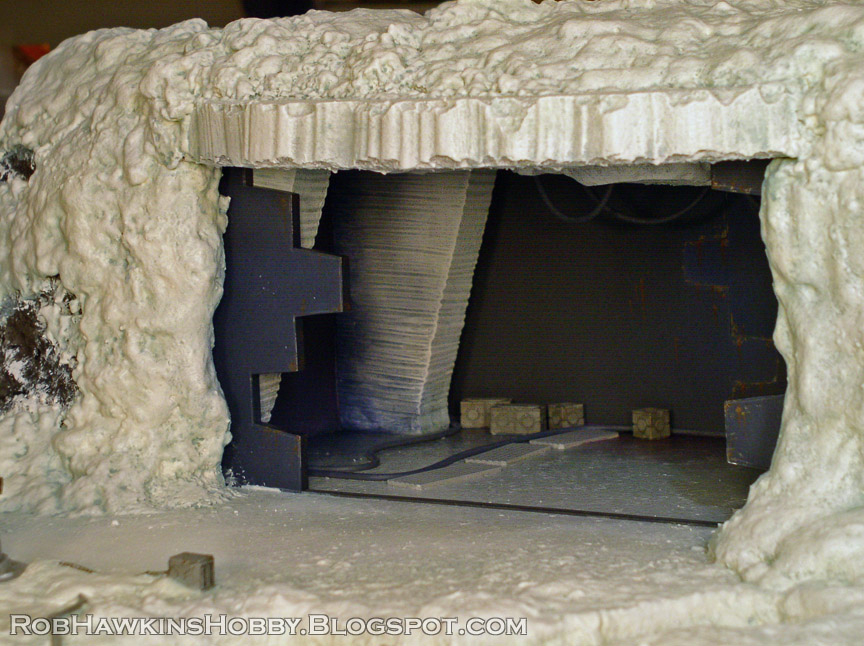 Inside, I used foam to model the angled walls. The blast doors were made from foam core board with styrene strips covering the edges.