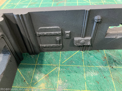 I kept the bunker separate for painting, and I added a sheet of diamond deck textured styrene card for the floor.