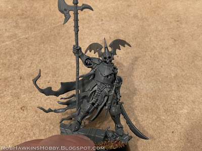 I've also converted Watch Captain Halgrim– I've never been a fan of hair on skeletons, so I initially trimmed it all off, but then I decided he needed something more, and gave him a winged helmet from the mounted Knight of Shrouds. And he's on a 25mm base so he can fit in the skeleton unit as a champion. I also considered replacing the sword with a shield, but I might simply strap the shield to his arm or on his back to give him a little more visual interest from behind.